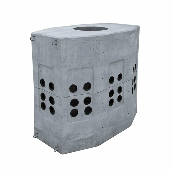 Колодец кабельной связи — это подземная железобетонная конструкция, предназначенная для монтажа, прокладки и технического обслуживания телефонных и телекоммуникационных сетей. Конструкция представляет собой многогранную (четырех- или восьмигранную) сборную систему, состоящую из днища с влагоотводящим желобом и основной камеры, на которую устанавливается опорное кольцо и закрывающий люк. Изделие обеспечивает защиту кабелей от механических повреждений и воздействия окружающей среды, обеспечивая доступ для монтажных и ремонтных работ.